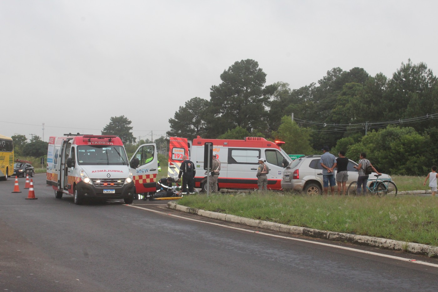 Conforme apurado pela reportagem, a Tucson saía da ERS-400 para ingressar na rodovia quando foi atingida pela motocicleta, que trafegava pela RSC-287. A condutora da motocicleta foi encaminhada ao Hospital Candelária com suspeita de fratura em uma das pernas. Posteriormente, ela deverá ser transferida para o Hospital Regional de Rio Pardo, referência em traumatologia. A ocorrência foi atendida por ambulâncias da concessionária Rota de Santa Maria, pelo Samu e pela Polícia Rodoviária Estadual (PRE).