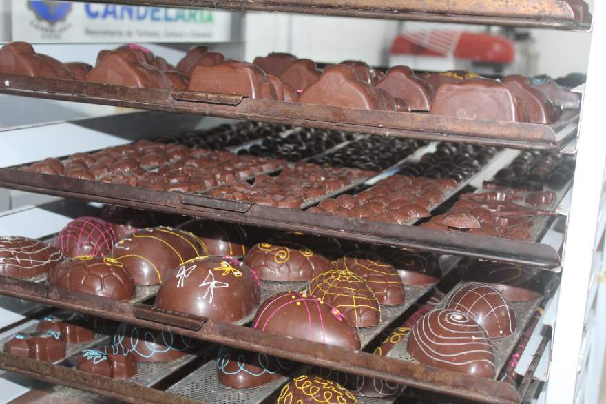 Mais de 200 quilos de chocolates já ganharam vida nas mãos de 49 mulheres, através do projeto Chococande. Em cinco semanas de trabalho, as integrantes do projeto social desenvolvido pela Secretaria de Turismo, Cultura e Cidadania se aproximam do final da produção de um total de 300 quilos de chocolates. O doce é transformado em ovos, coelhos, pirulitos e outros itens que despertam a magia da Páscoa e encantam não só as crianças, como também os adultos.